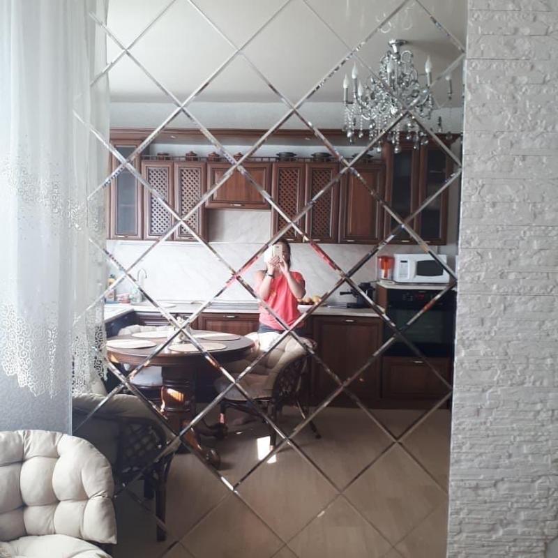 Использована зеркальная плитка "вытянутый ромб" с фацетом.